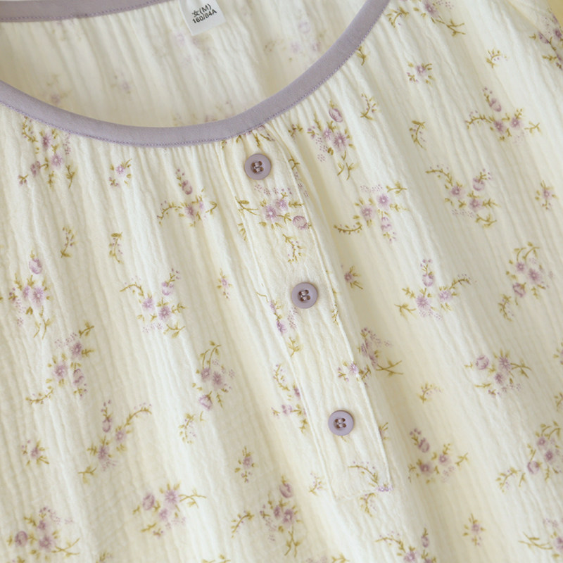 春夏秋款 家居服套装 学生宽松 纱布套头长袖 甜美碎花纯棉睡衣女薄款