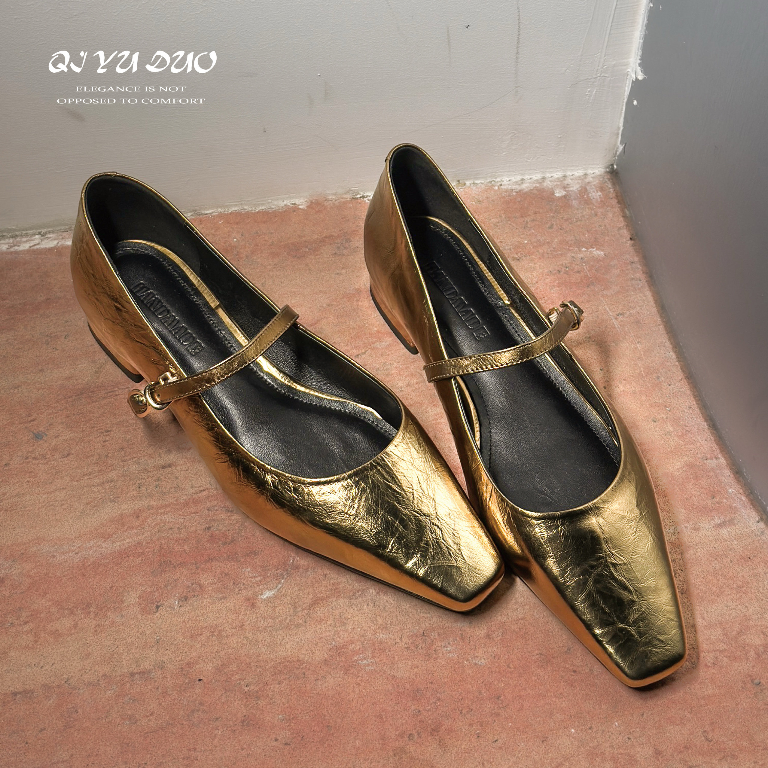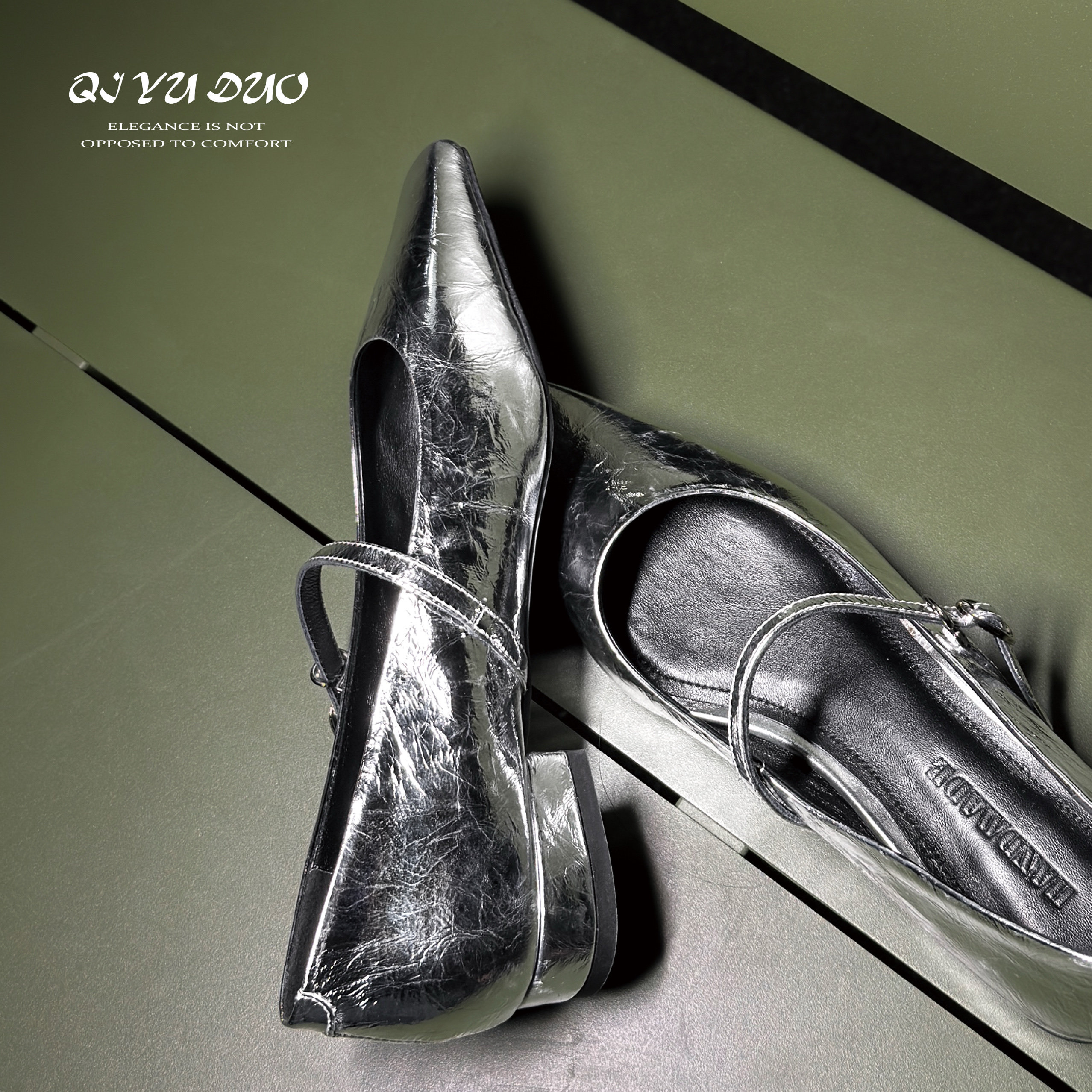 七与多 绝美银色一字带玛丽珍女鞋 羊皮 法式 气质方头单鞋 2cm