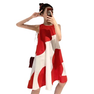 中长款 大码 宽松胖mm无袖 连衣裙2024夏季 气质减龄显瘦背心裙子 女装