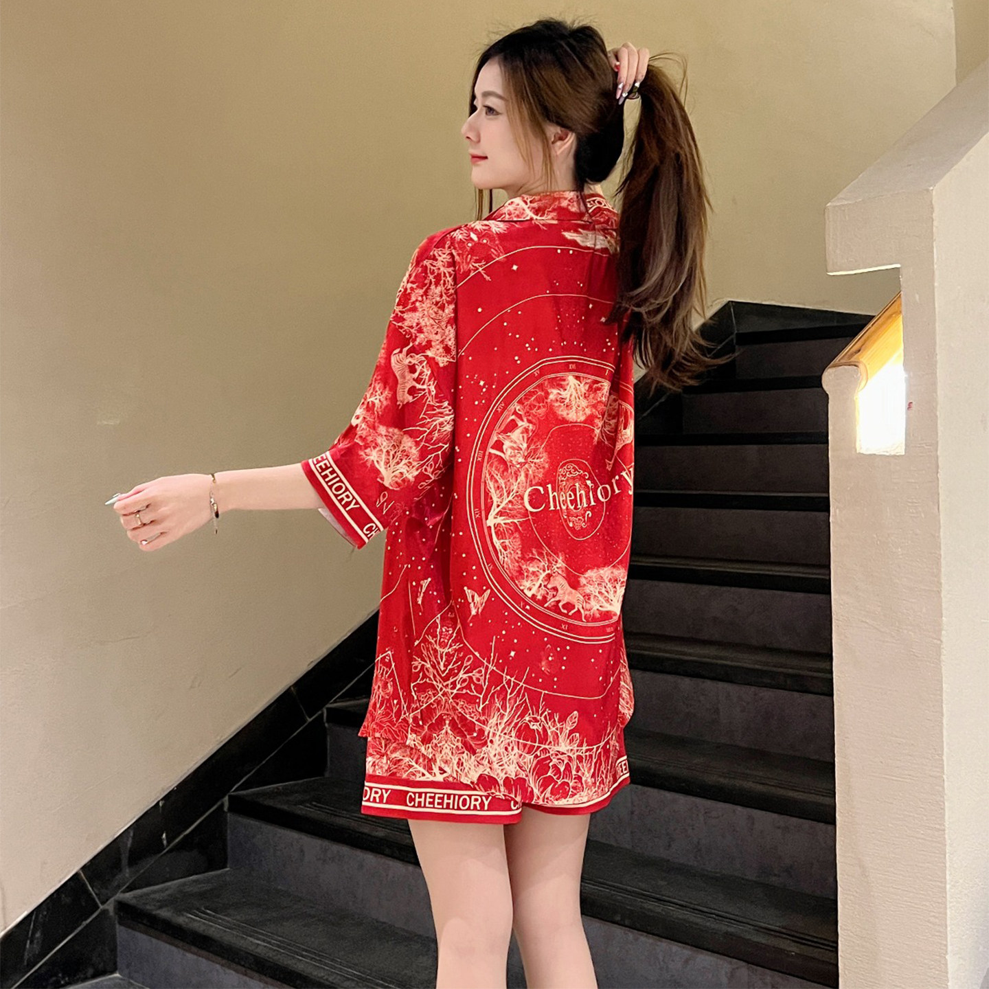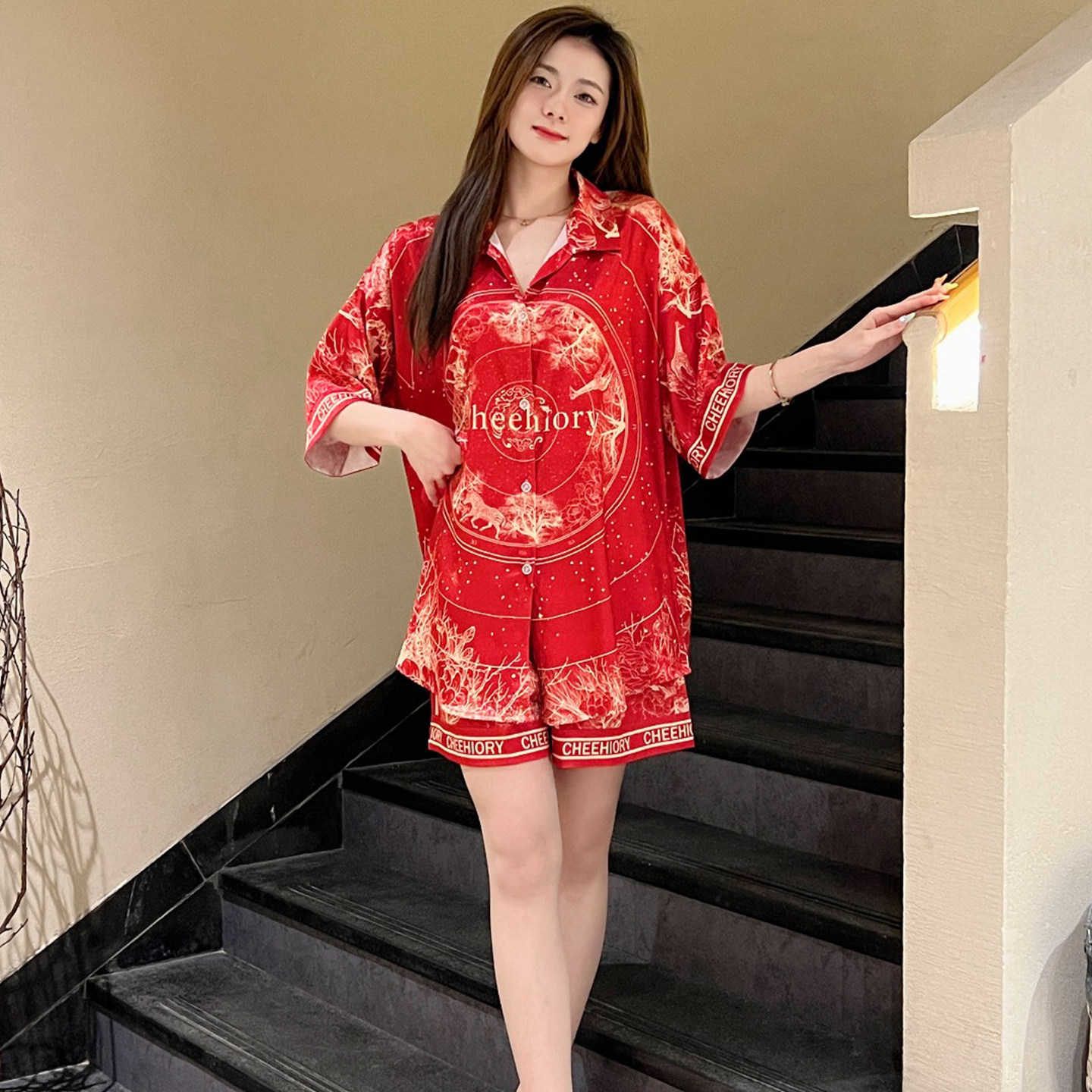 休闲家居服两件套装 冰丝睡衣女夏薄款 短裤 可外穿凉感短袖 国风时尚