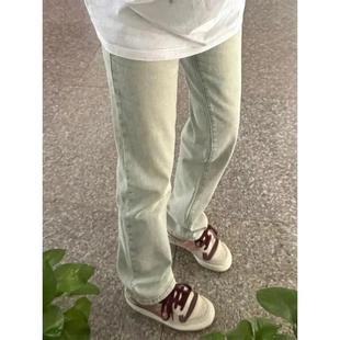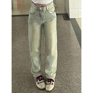 阔腿烟管长裤 女高腰显瘦窄版 小个子复古做旧黄泥色直筒牛仔裤 xs码
