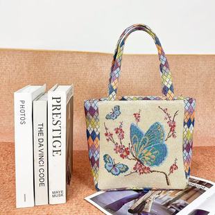 新款 刺绣手提包百搭休闲包便携上班小拎包民族风帆布包手拎外出