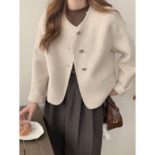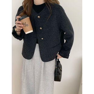 圆领呢子外套百搭新款 2026年小香风双面羊毛大衣女短款 气质韩版