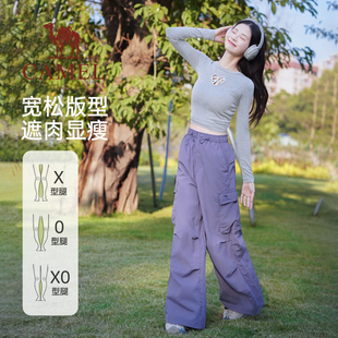 秋冬新款 女跑步运动长裤 宽松直筒拖地瑜伽健身裤 速干弹力阔腿裤