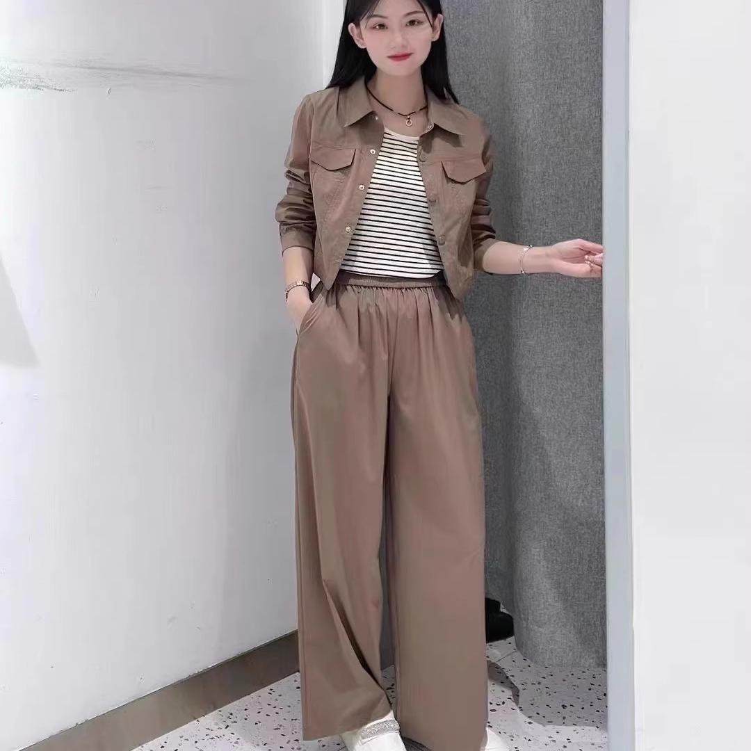 休闲短外套条纹背心阔腿裤 时尚 三件套39DQ847001 新款 朵以2024秋装