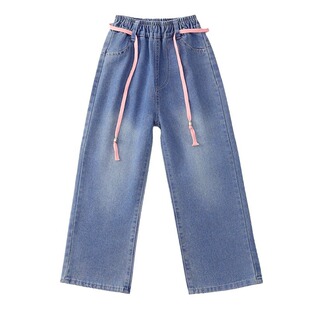 女童牛仔裤 中大童女童阔腿裤 春秋新款 秋季 子 儿童宽松直筒长裤 童装