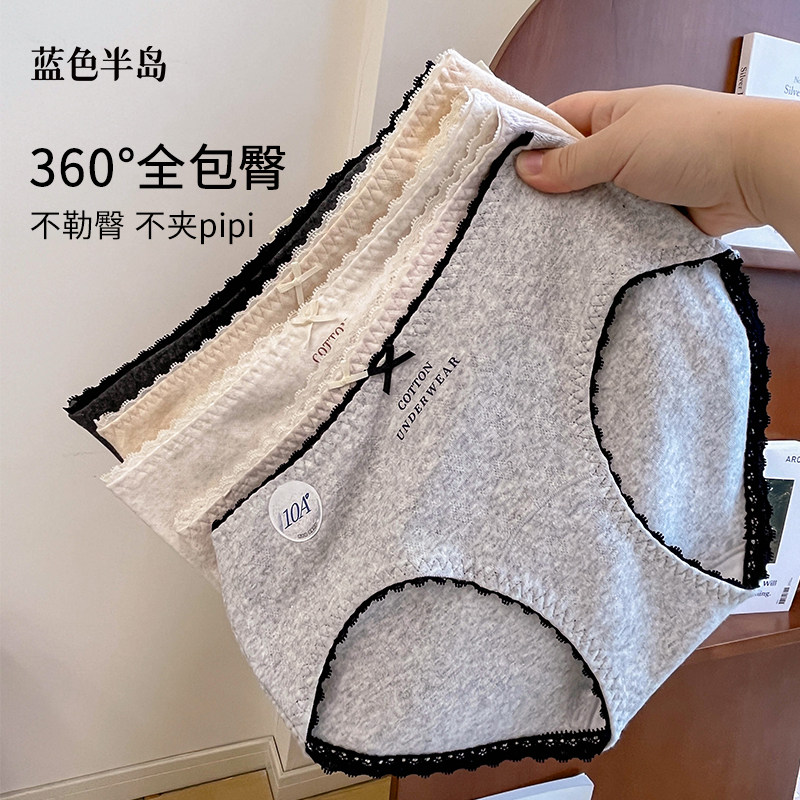 纯棉抗菌裆绑带 性感纯欲低腰三角内裤 3条98元 好奇蜜斯蕾丝女法式