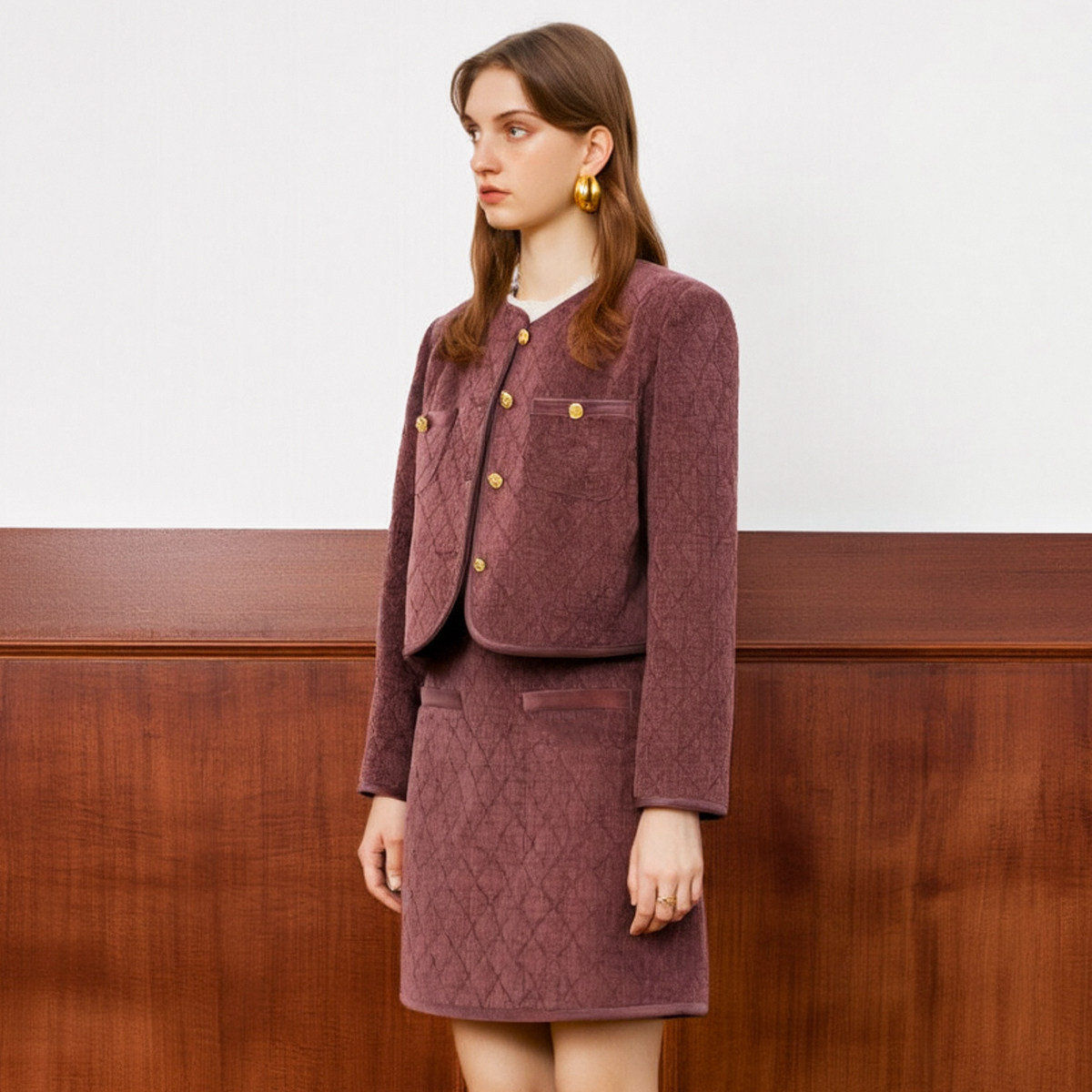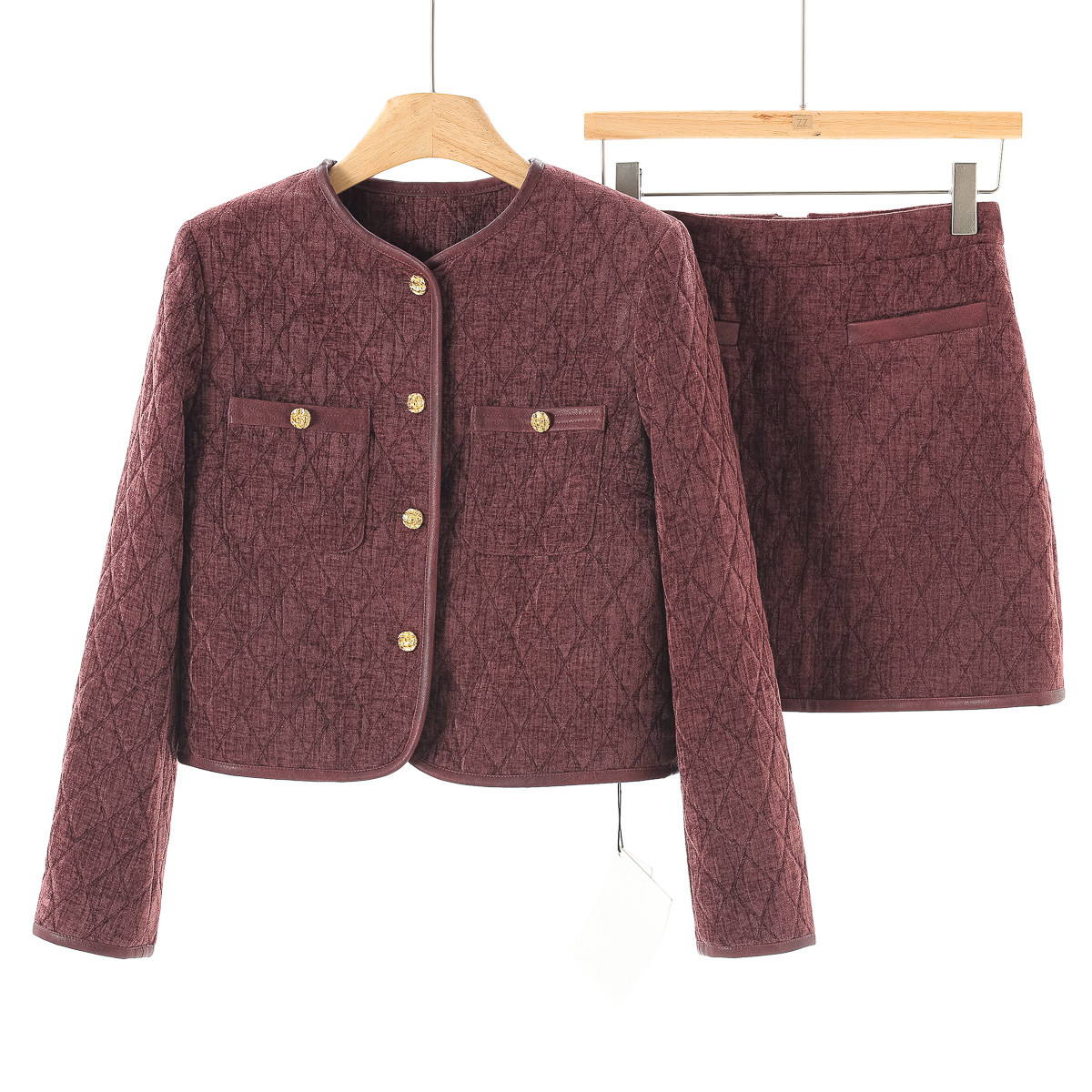 绍 春季 圆领单排扣短款 外套 100 西湖阁老 半身短裙套装 幸
