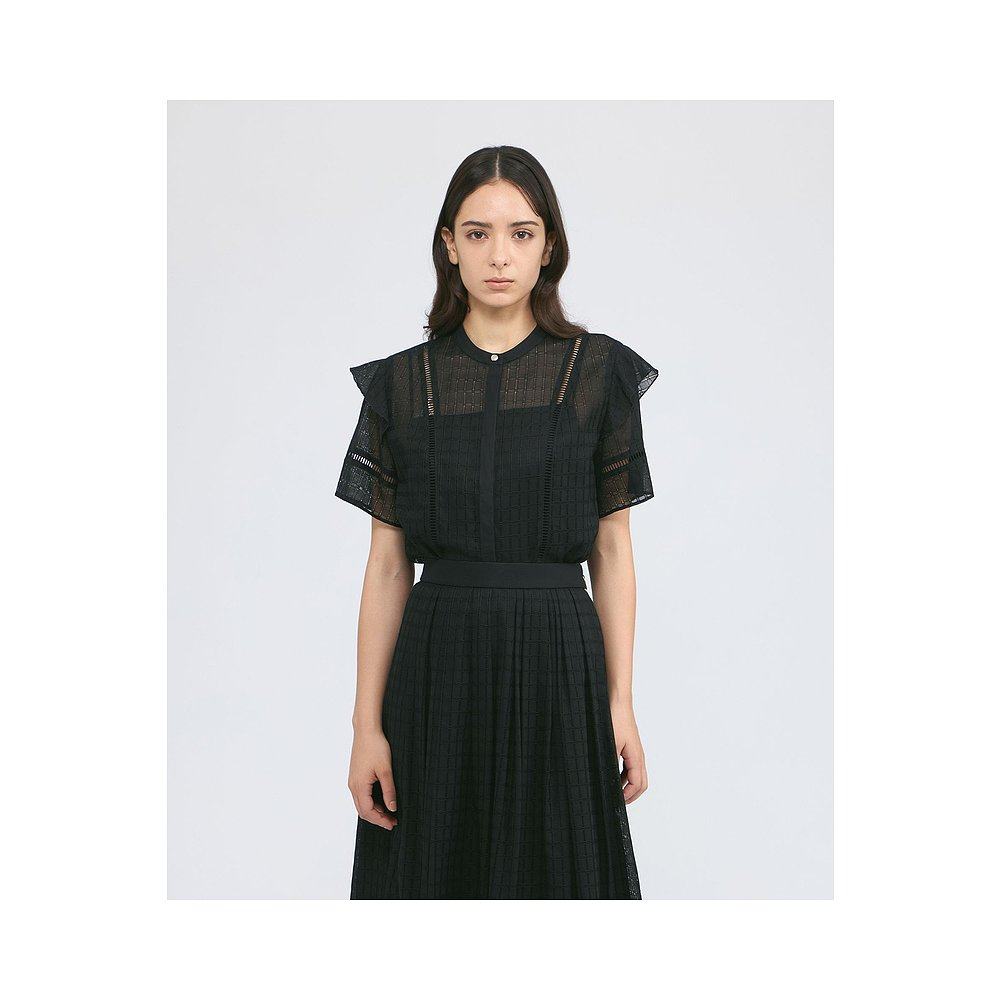 衬衫 1h可退 格子拼接蕾丝半拉链短袖 女装 M5M3460 日本直邮EPOCA