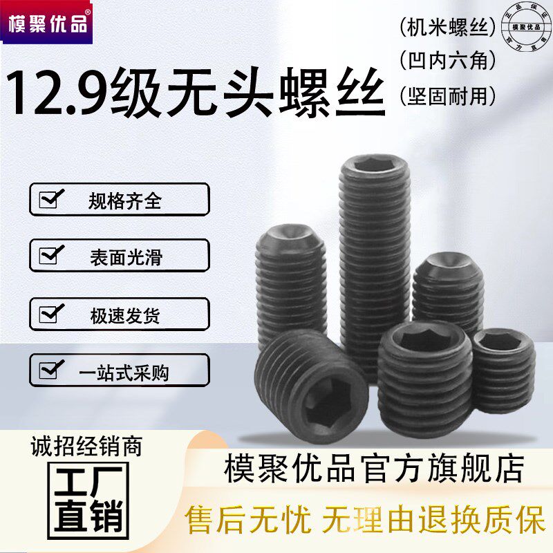 紧定螺丝12.9级凹端机米螺钉内六角无头螺丝基米顶丝M3M4M5 M12