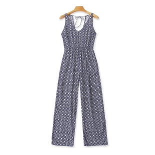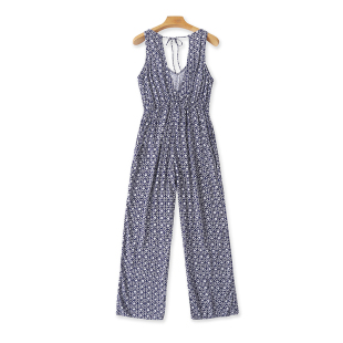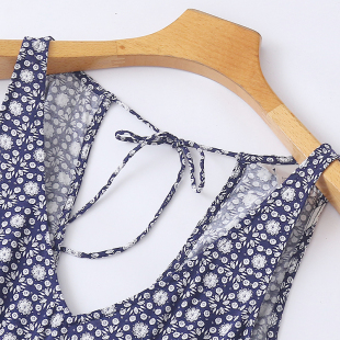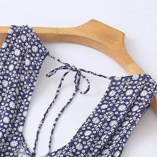 背心女直筒裤 露背显瘦无袖 子12284 新款 外贸V领人棉碎花连体衣夏季