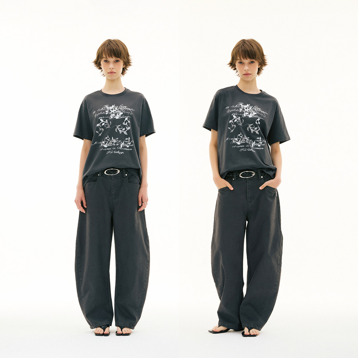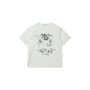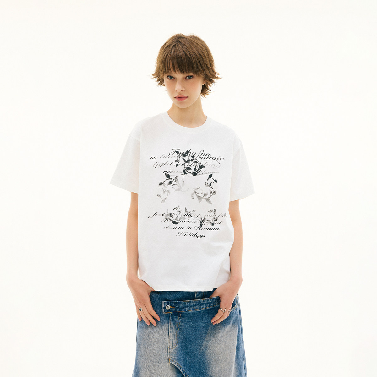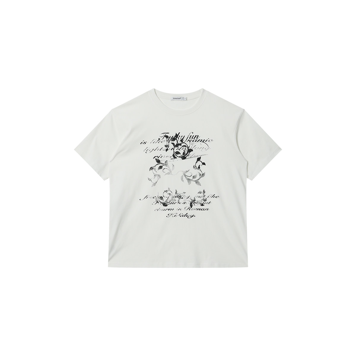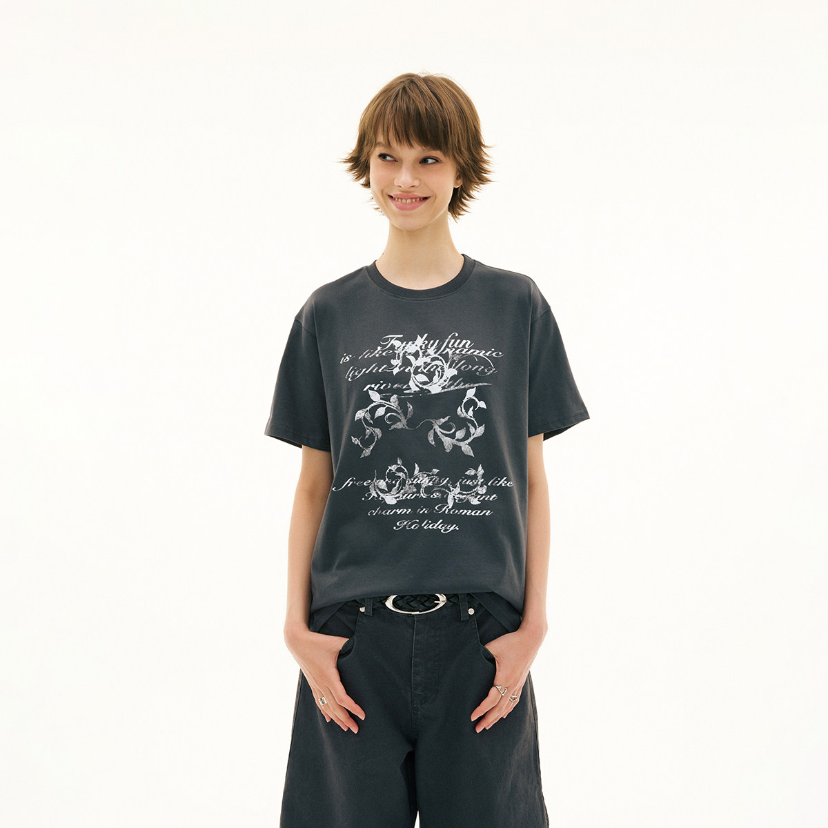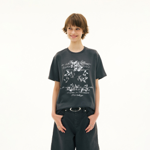 型落肩圆领短袖 做旧斑驳花卉标语印花宽松大版 2025SS FUNKYFUN
