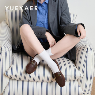 女英伦风中跟小皮鞋 月芽儿秋季 复古单鞋 粗跟一脚蹬乐福鞋 新款