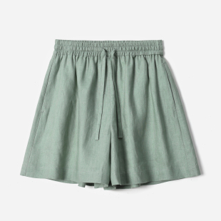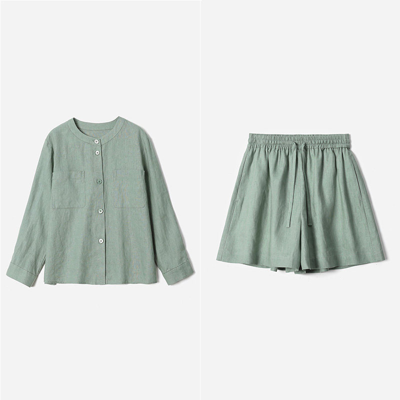 茉莉雅集 短裤 衬衫 C复古小清新蟹壳青全亚麻圆领长袖 WCS08154