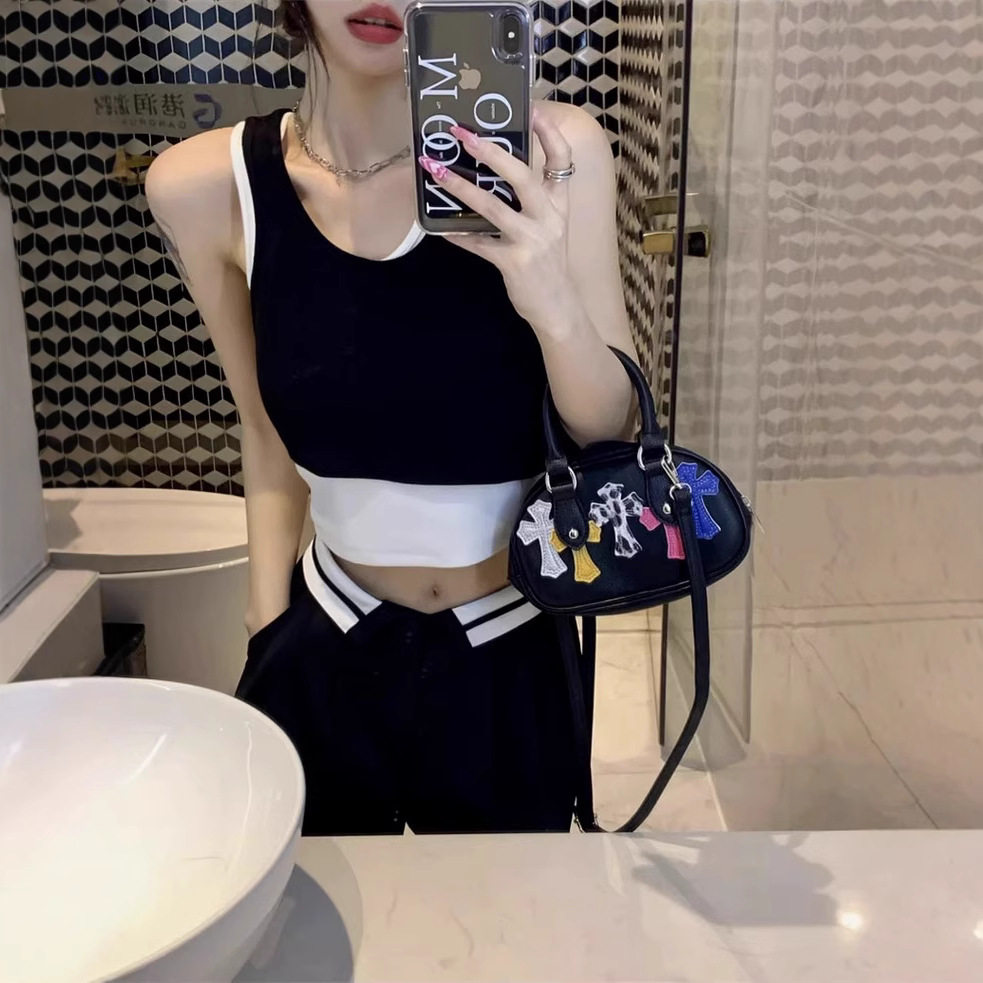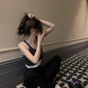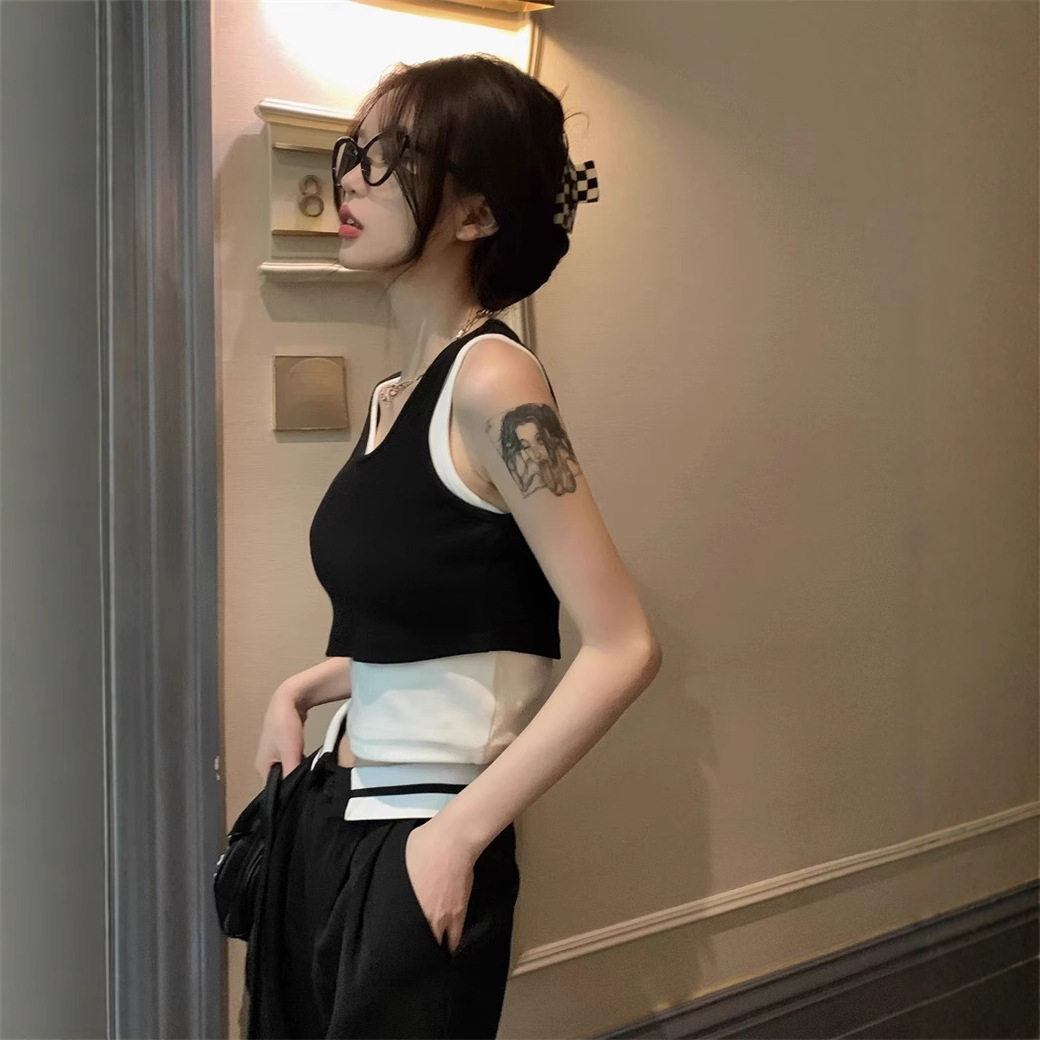 color sling fake piece 女士纯色U领假两件吊带小背心 two Solid