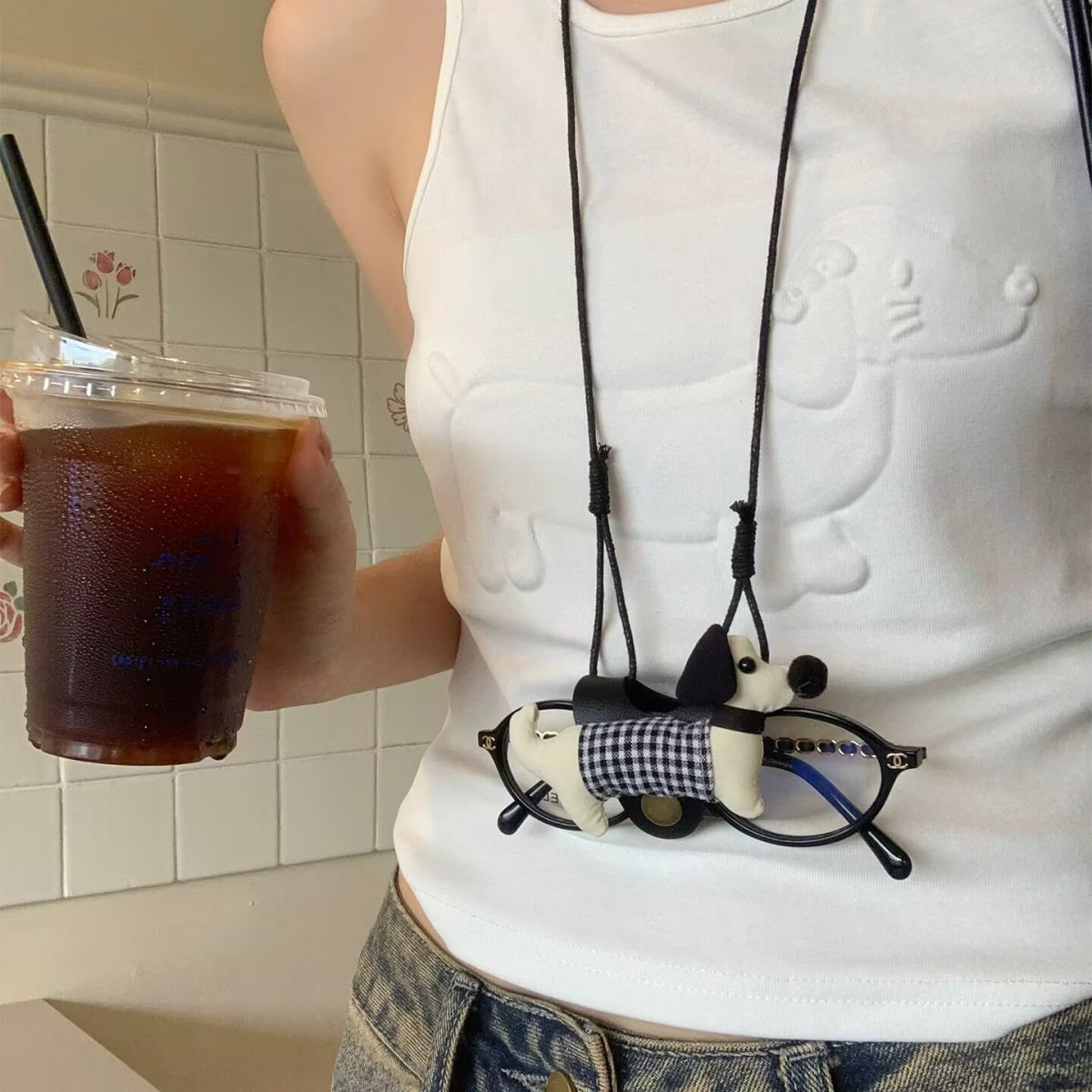 可爱小狗挂绳眼镜夹项链女假日出游高级感防脱落墨镜夹挂脖配饰品