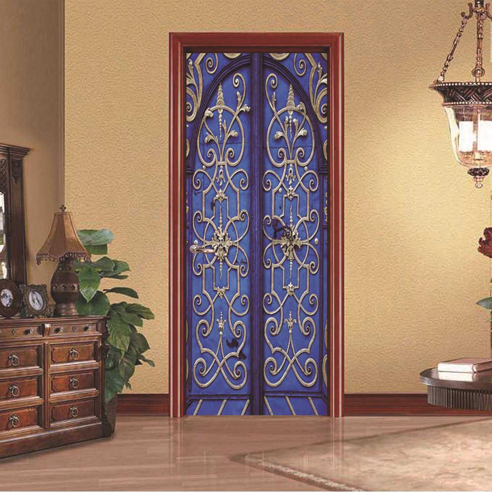 饰 卧室客厅现代装 蓝色门 墙贴 巨创货源PVC贴纸3D自粘门贴