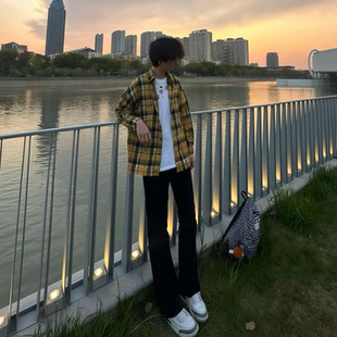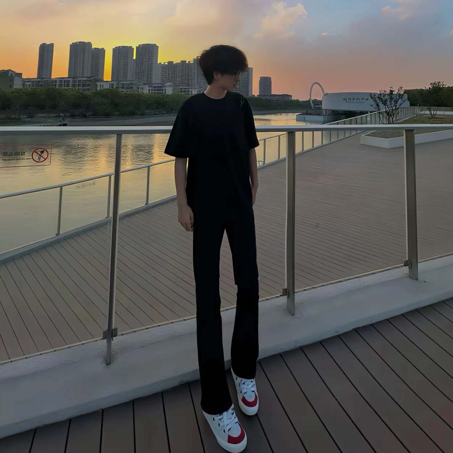 子 春秋男女直筒显瘦百搭长裤 美式 高街cleanfit黑色弯刀微喇牛仔裤