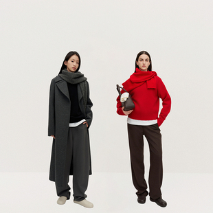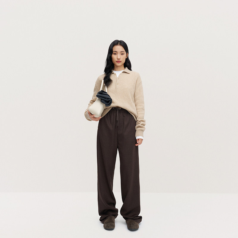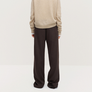 新品 女宽松显瘦保暖2024冬季 羊毛呢直筒阔腿长裤 OCHIRLY欧时力