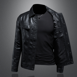 潮男货号7950 翻领机车皮外套修身 P175镂空图 男士 2025年秋冬新款