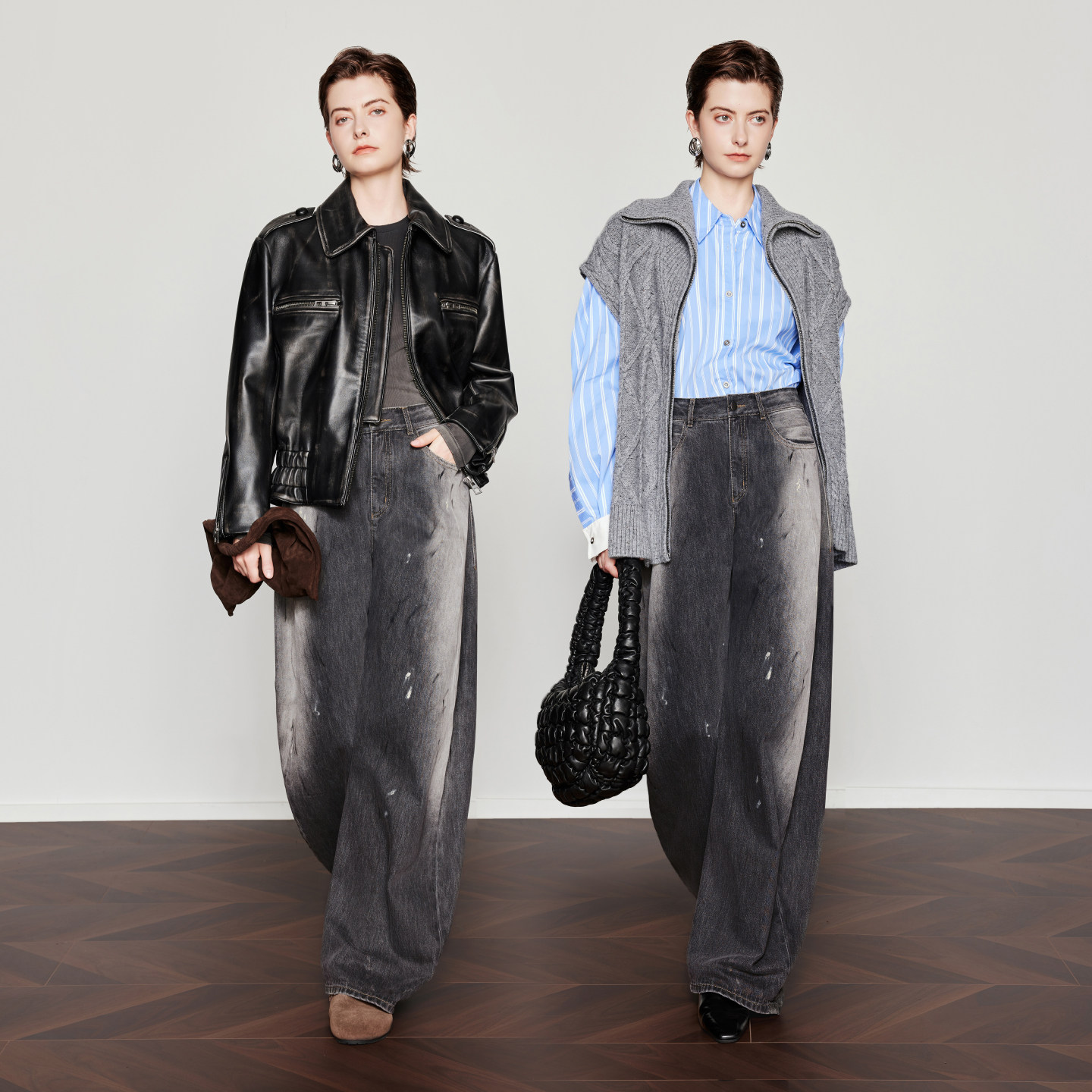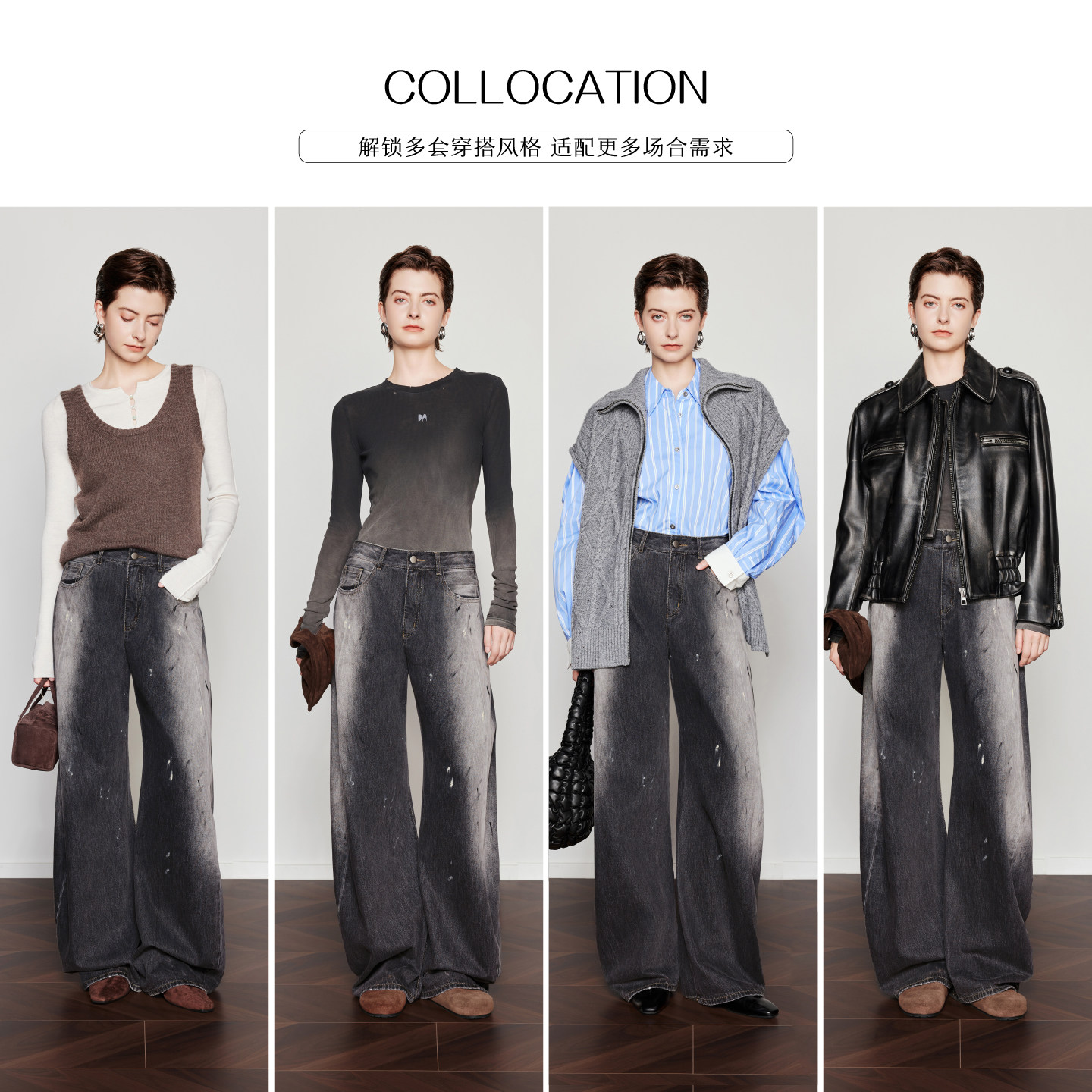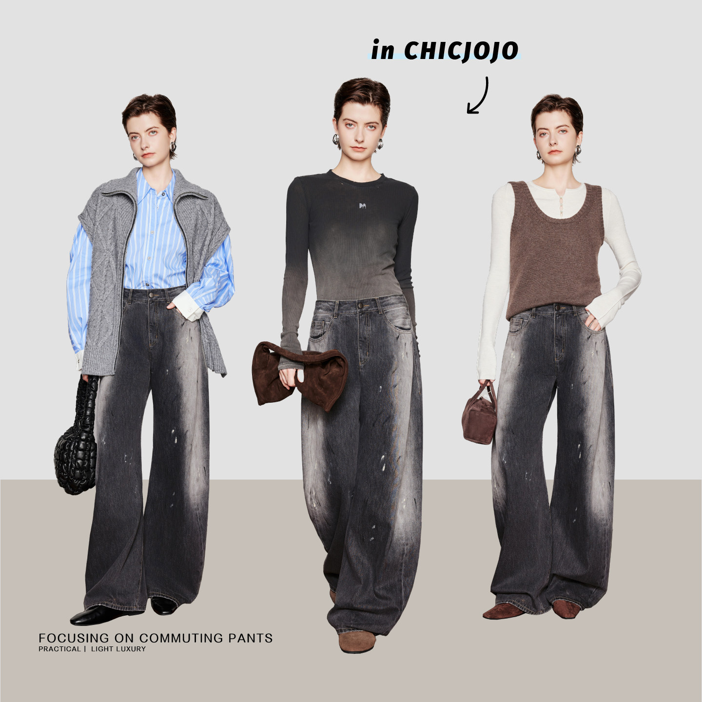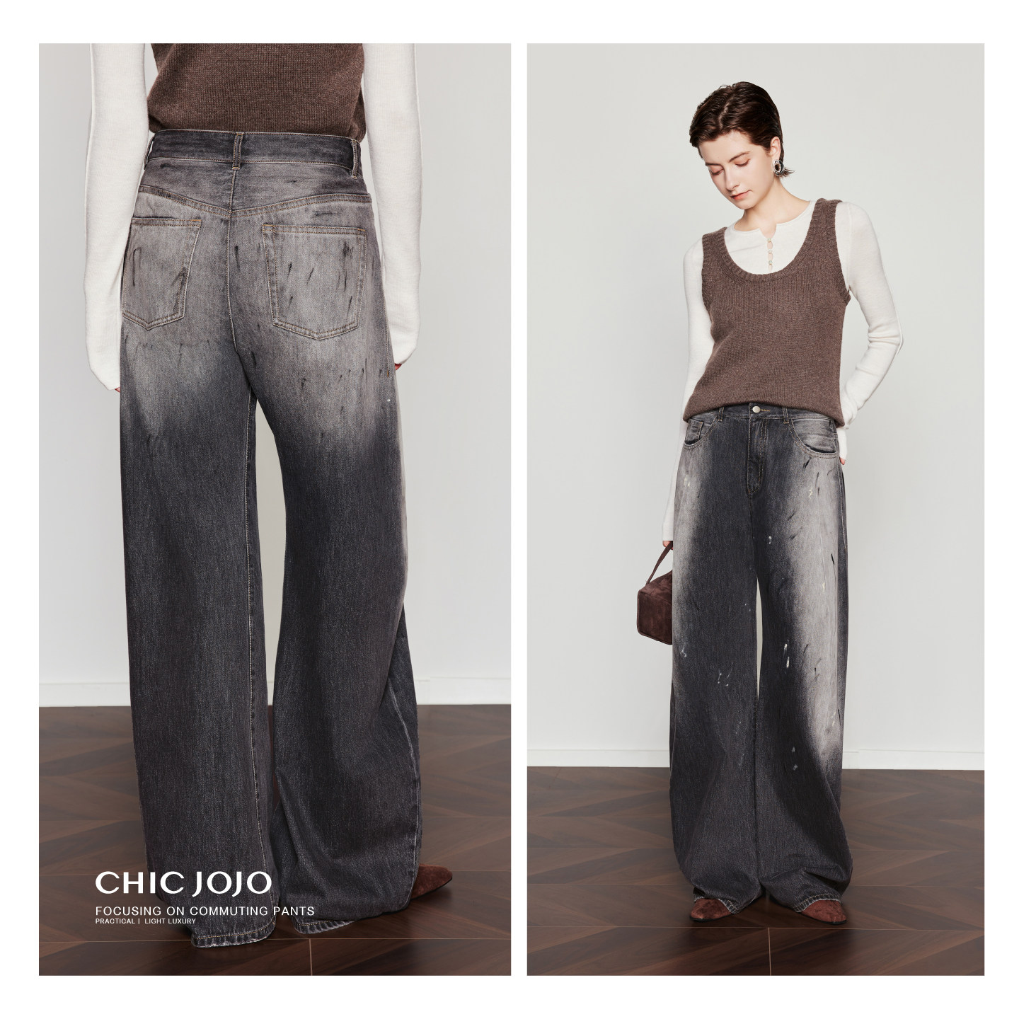 雅痞艺术家 时尚 泼墨弯刀裤 女26春新款 休闲裤 CHICJOJO牛仔裤