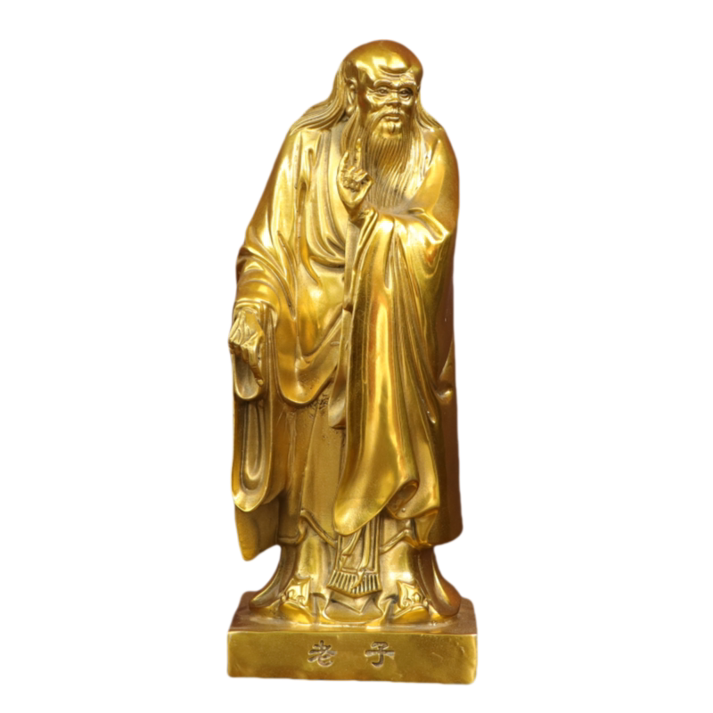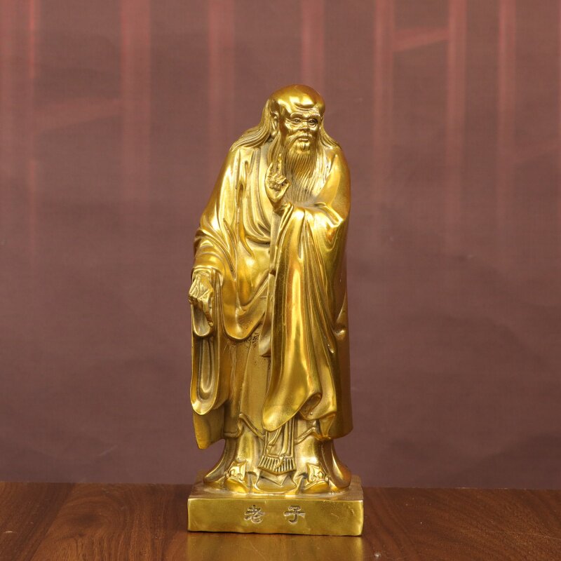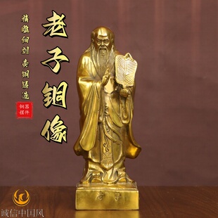 纯黄铜老子铜像摆件家居书房道家老子像国学摆件供奉装 饰工艺品