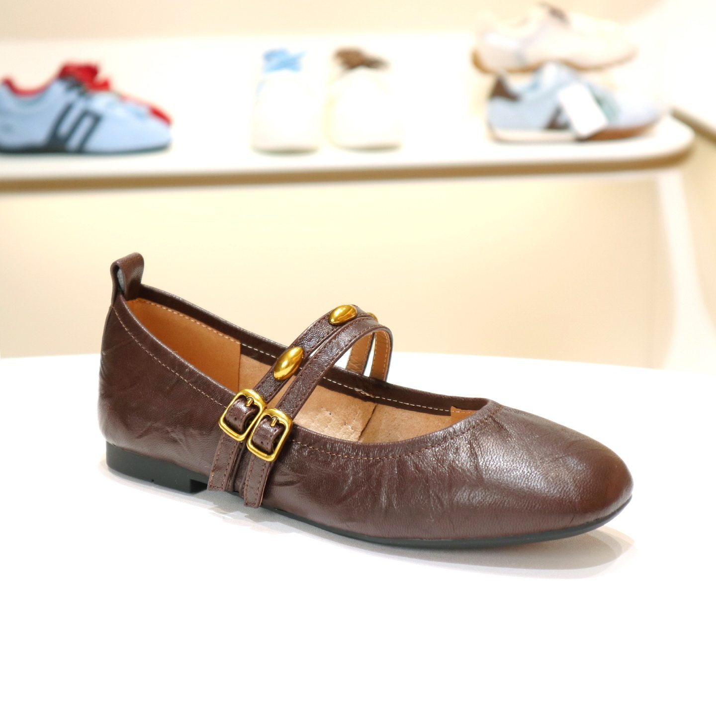 蛋卷平底单鞋 女新款 子E1V1DCQ5 百丽小金豆羊皮芭蕾玛丽珍鞋 特价