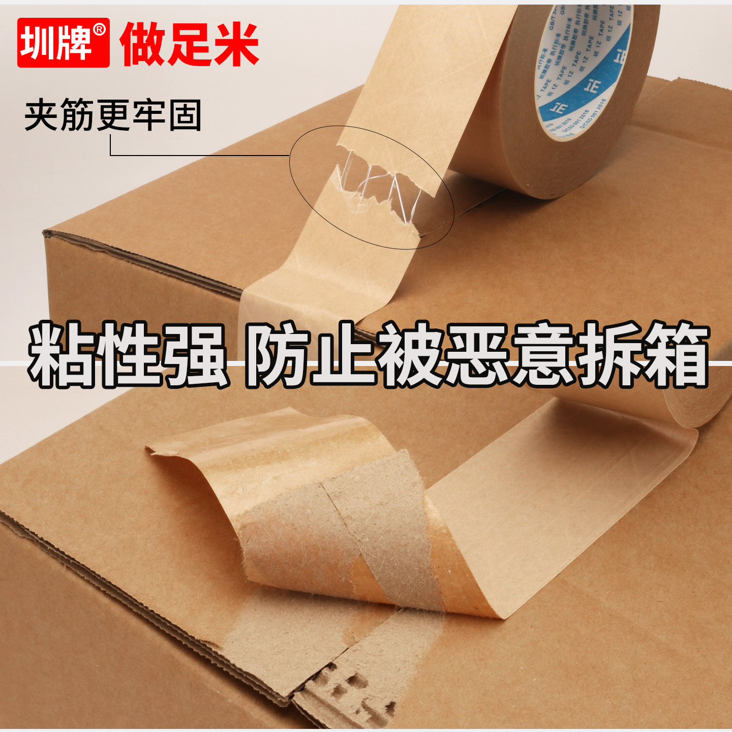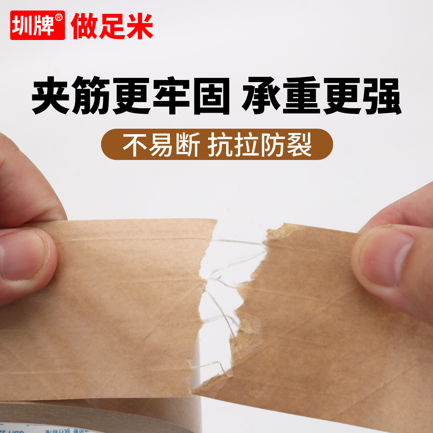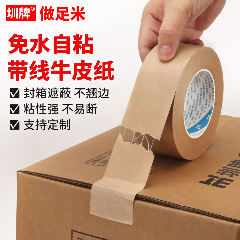 免水夹筋牛皮纸胶带有线纸质胶布防拆加纤维线封箱胶带不易断强力高粘度包装 裱画框免粘水夹筋牛皮纸胶带