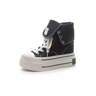 厚底休闲板鞋 12cm小个子内增高两穿帆布鞋 韩版 新款 女高帮2026春季