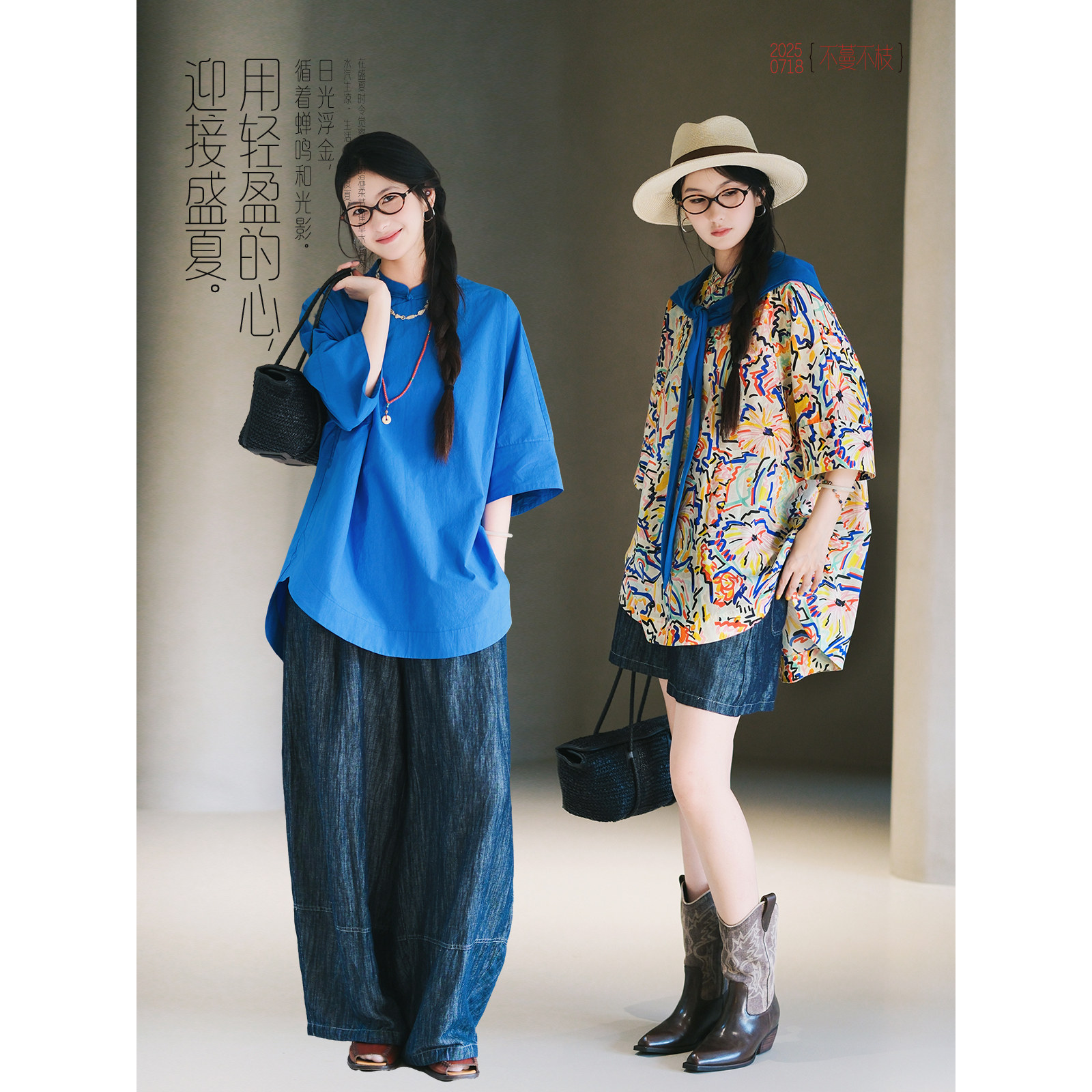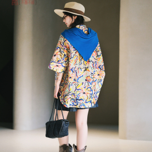 衬衫 不蔓不枝 印花短袖 新中式 纯棉上衣宽松休闲百搭夏 蓝色烟火