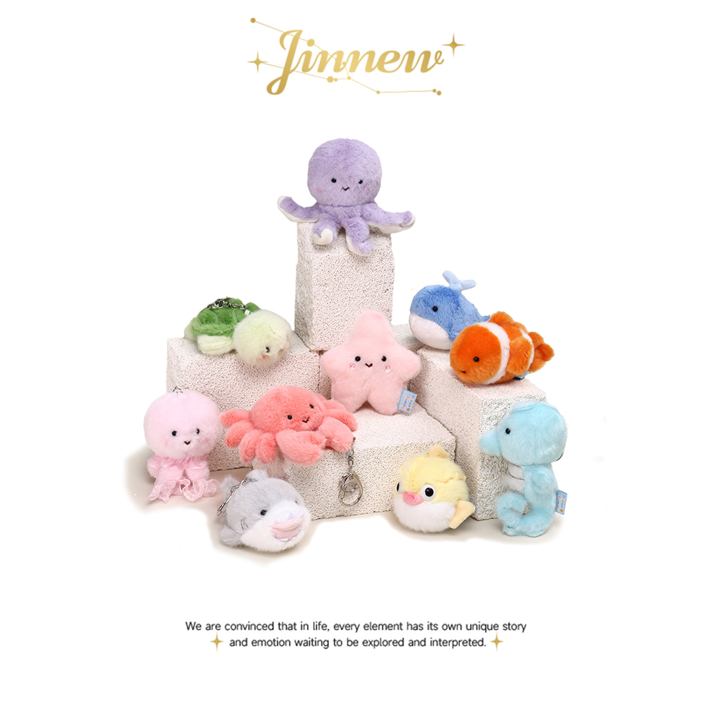 Jinnew原创海洋家族蓝鲸鱼BB叫毛绒公仔小玩偶书包背包挂件钥匙扣