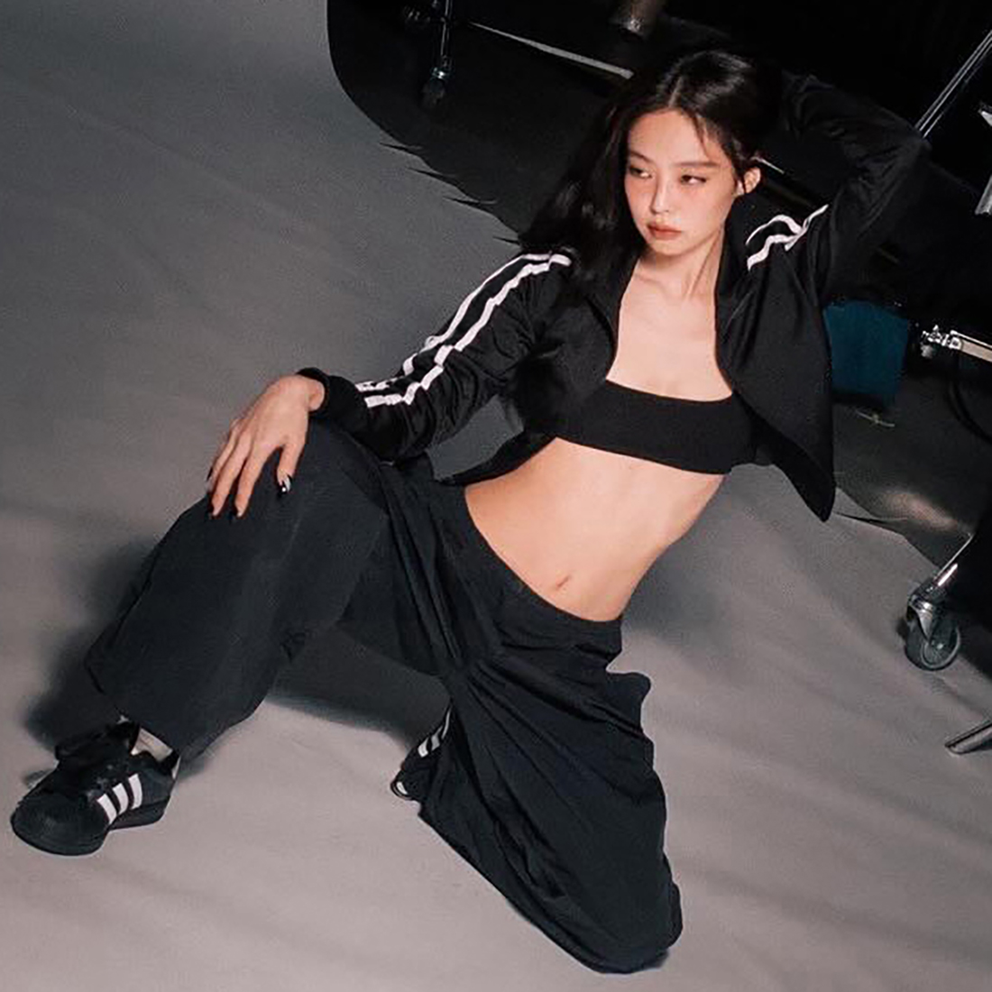 运动休闲露脐上衣 两条杠拉链短外套女 怪诞女孩 金智妮Jennie同款