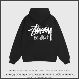 瑞斯图西STU北京限定背面logo加绒连帽卫衣宽松休闲百搭男女款