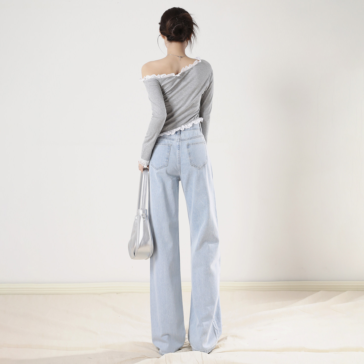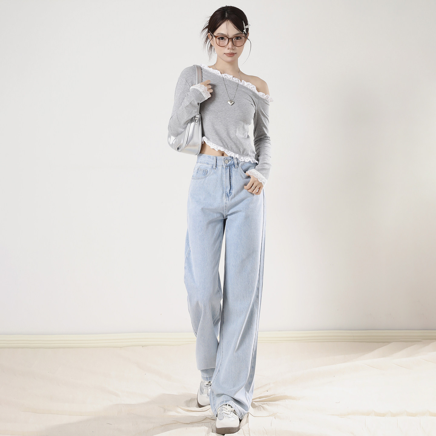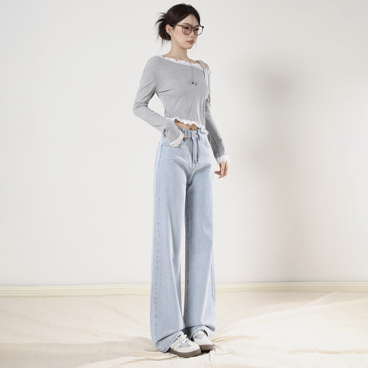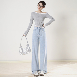 宽松直筒小个子休闲拖地裤 艾格浅蓝窄版 新款 女2026春季 阔腿牛仔裤