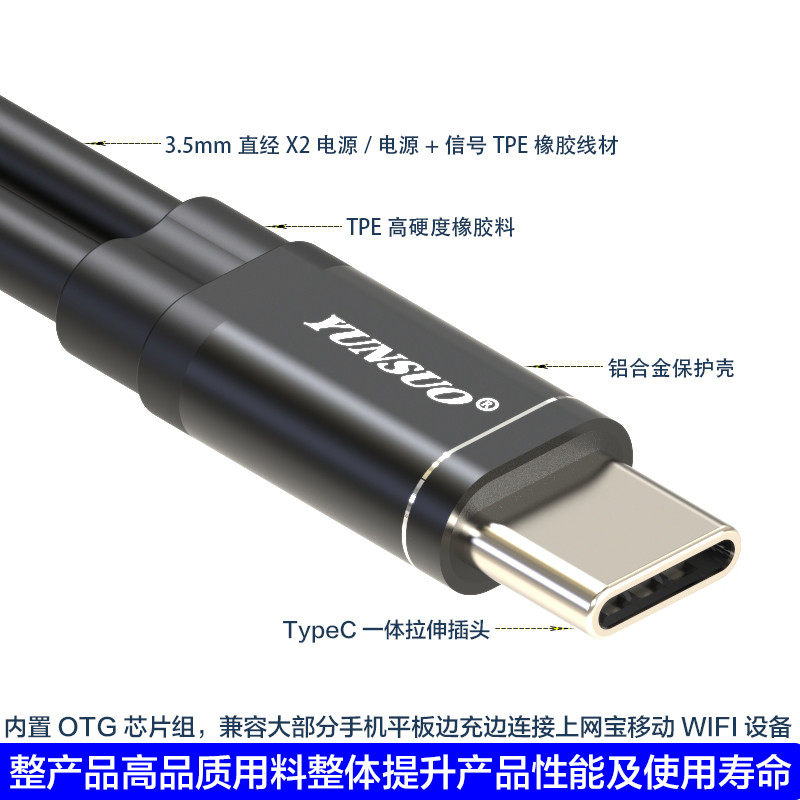 手机边充电边连接上网宝无线WIFI数据接收终端设备一分二两用转接线双TypeC接口一转二OTG反充电与传输数据线