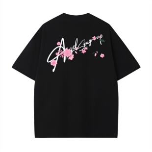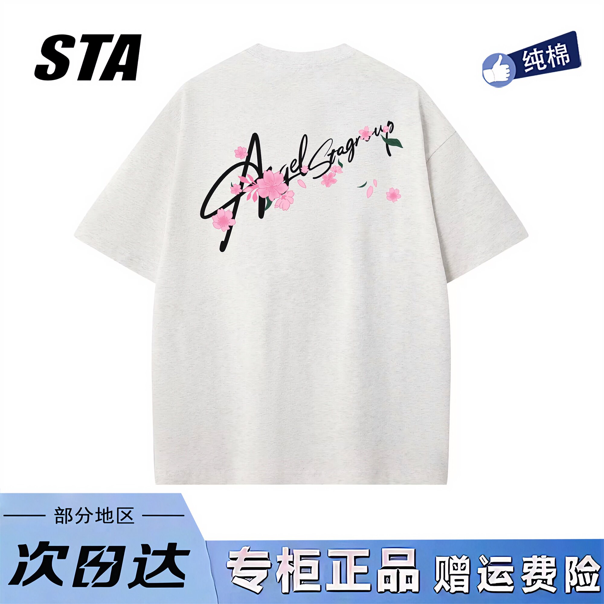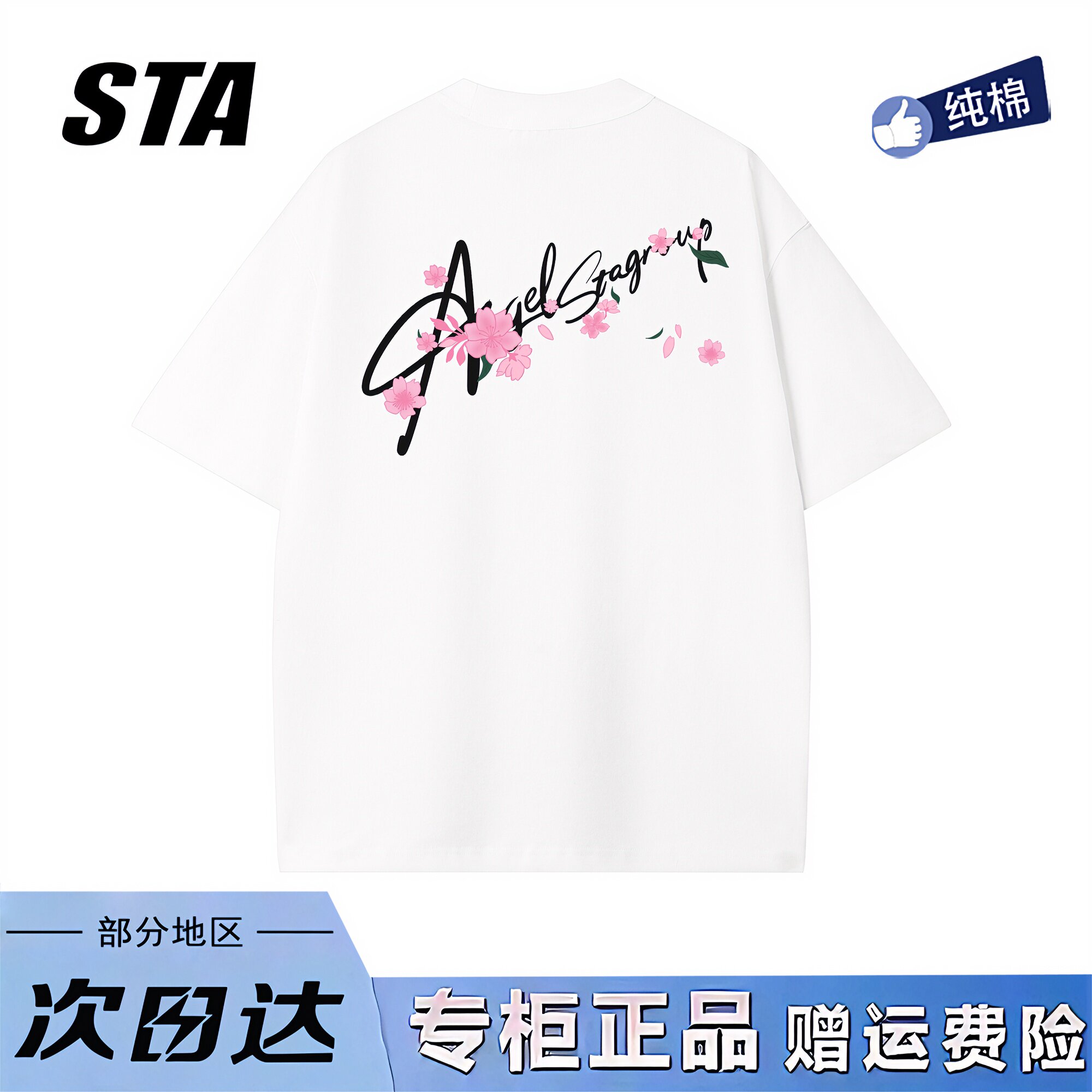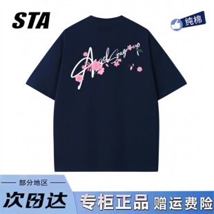 STA旗舰店美式 男女潮牌复古oversize情侣纯棉t恤 手绘花卉印花短袖