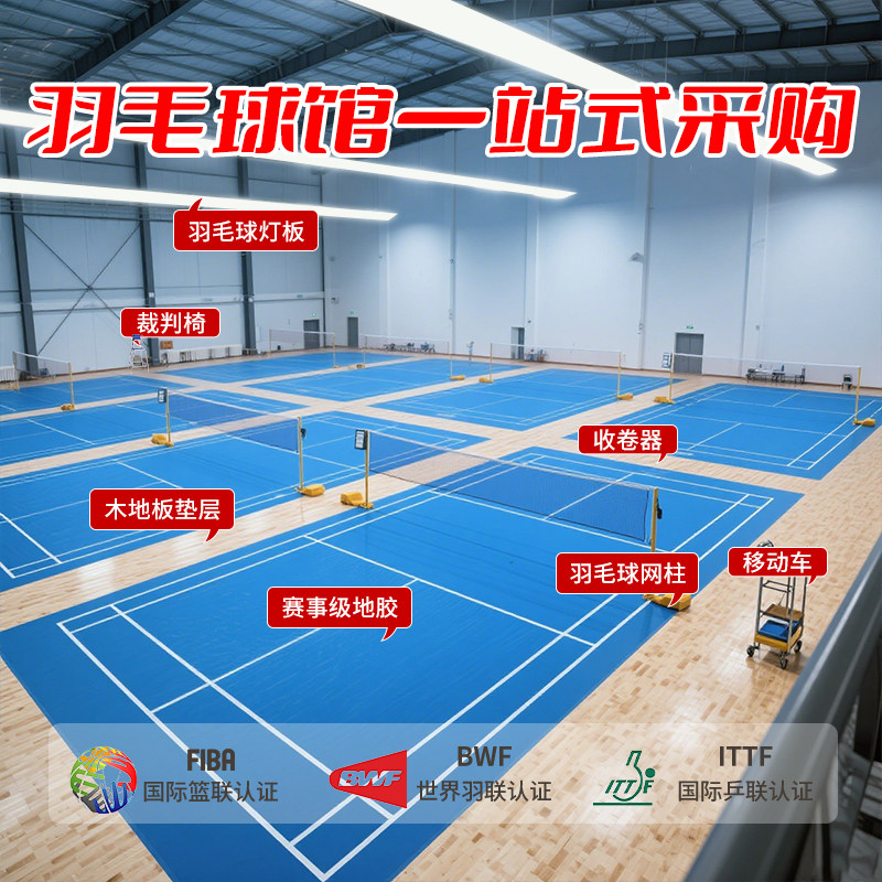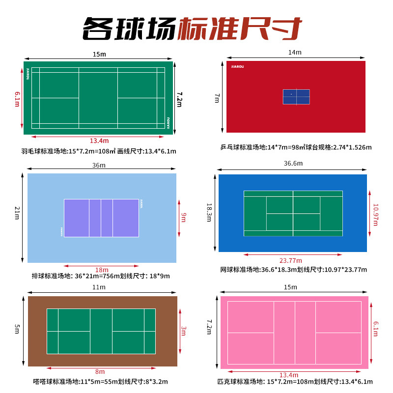 羽毛球场地胶垫室内气排球专用运动地胶匹克球pvc塑胶地板