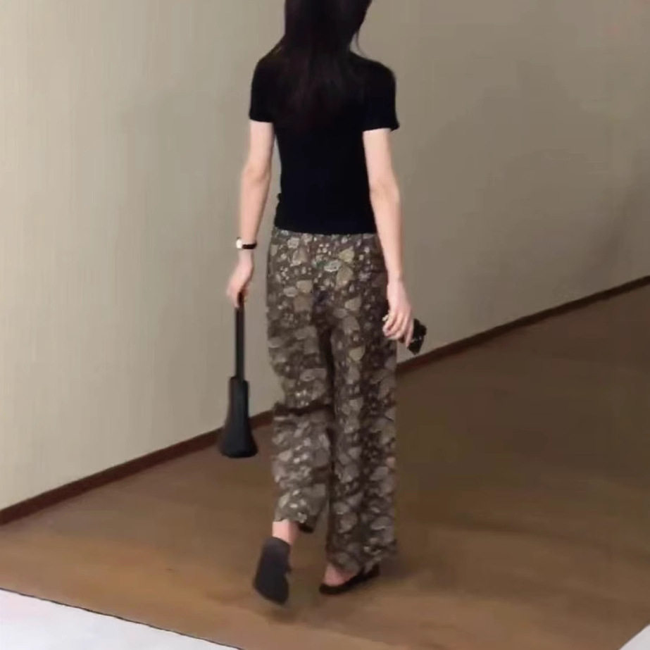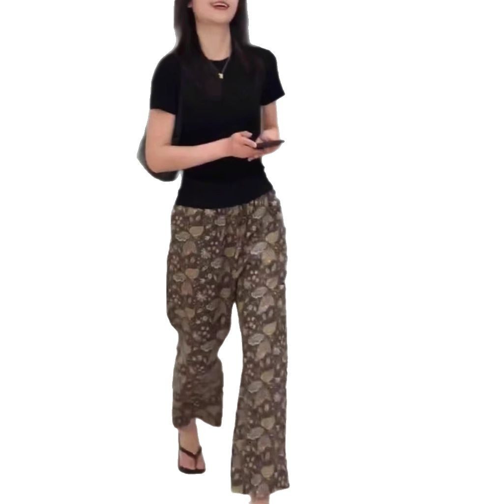 新款 印花九分裤 色修身 t恤时尚 显瘦 短袖 日系cherrykoko25220夏季