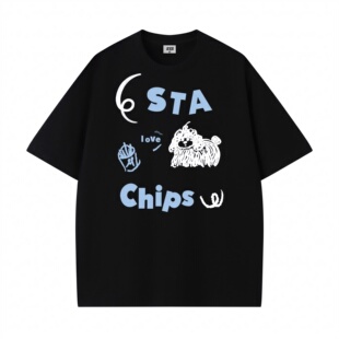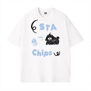 STA旗舰店趣味潦草小狗字母印花短袖 潮牌重磅纯棉情侣t恤 男女美式