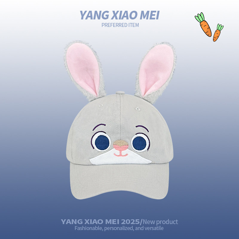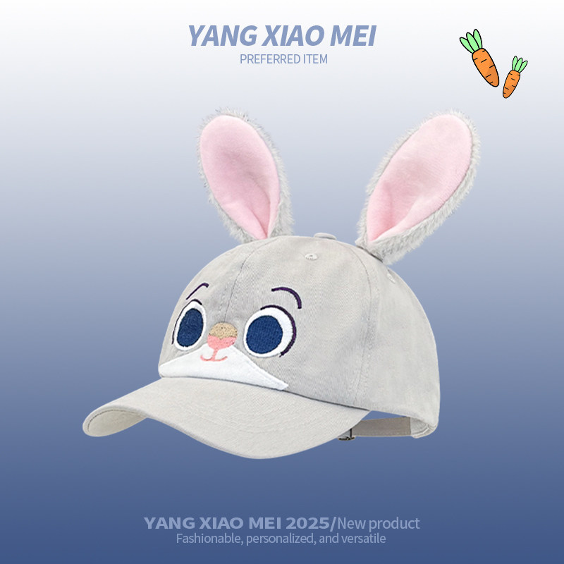 2025新款 百搭防晒朱迪鸭舌帽显脸小 可爱卡通兔子棒球帽子女春夏季