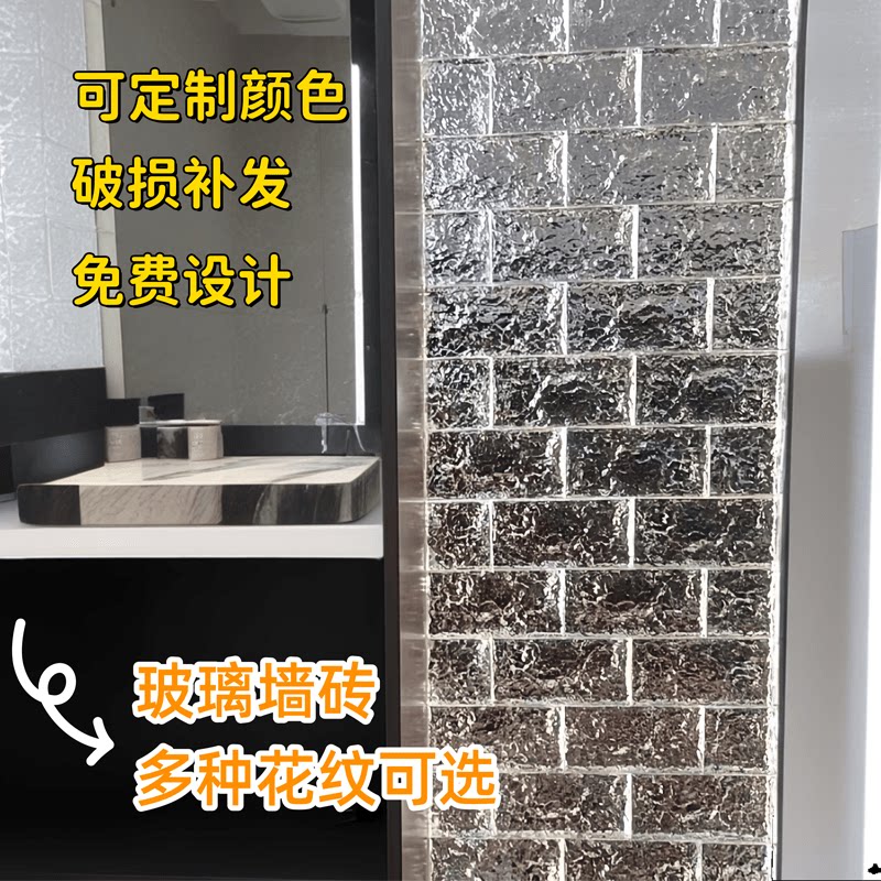 超白玻璃砖水晶砖透明方形隔断墙卫生间网红空心实心双面冰纹砖块