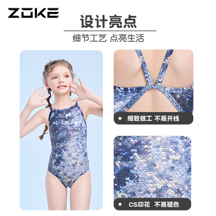 洲克儿童泳衣女童连体三角专业训练青少年比赛女孩竞技灰人鱼泳装
