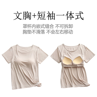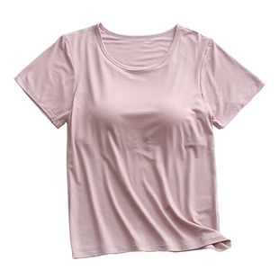 宽松可外穿半袖 莫代尔睡衣家居服大码 上衣 t恤女夏薄款 带胸垫短袖
