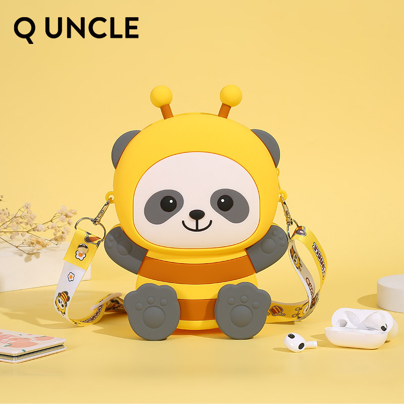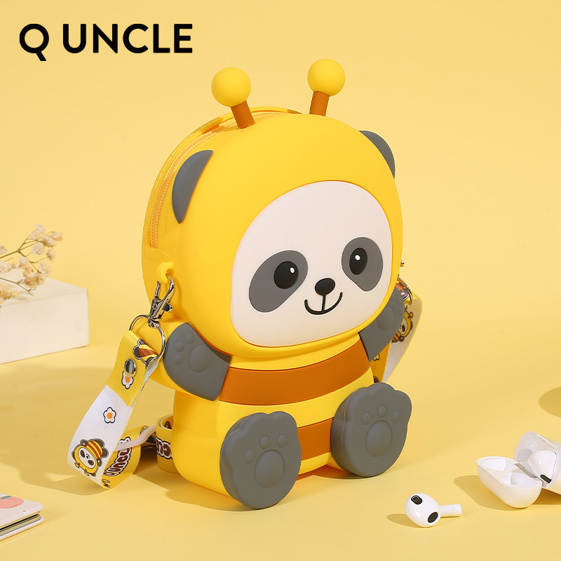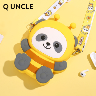 Q版 大叔蜜蜂熊猫儿童卡通硅胶斜挎包少女可爱单肩手机包2024夏新