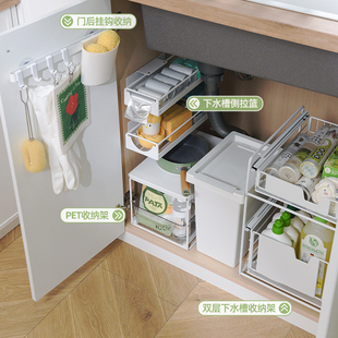 水槽下极窄抽拉篮侧装 橱柜内收纳整理盒厨房夹缝抽屉置物架壁挂式