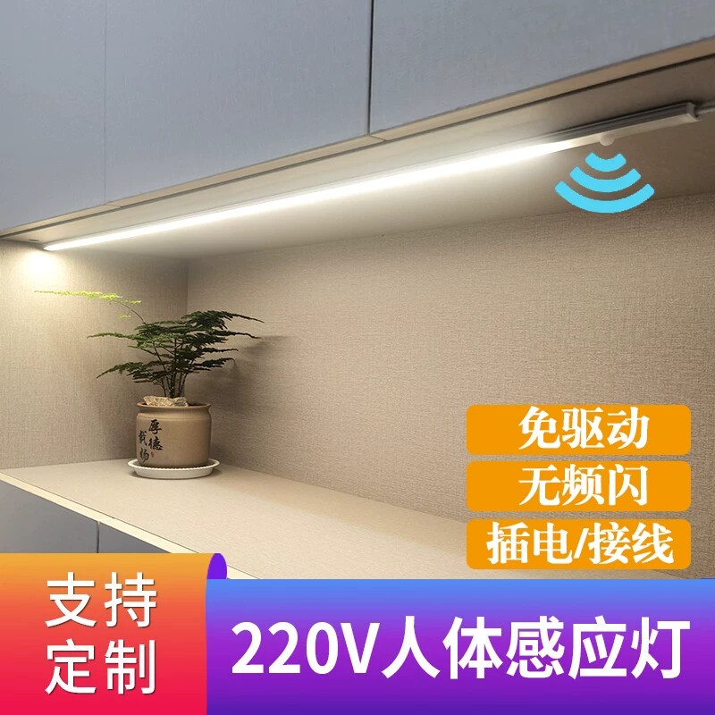220v插电式 人体感应灯带无线自粘橱柜衣柜餐边酒柜led灯条 接线款