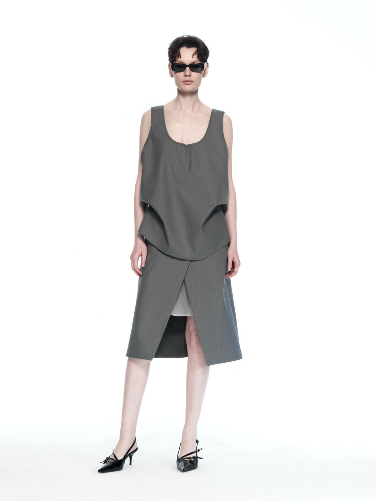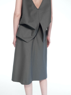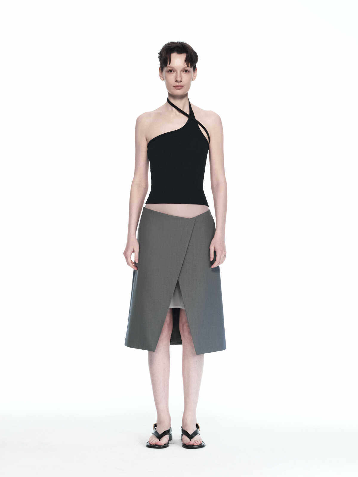 假两件双层错位围裹式 DUE 格雷系高级灰简约气质 CHEN 半身裙