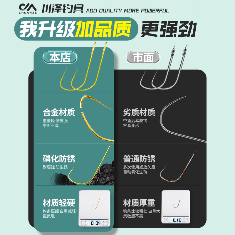 川泽升级金袖 钩鲫鱼钩 子线双钩伊势尼成品绑好防缠鱼钩短子线袖