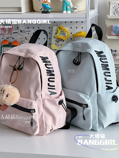 书包女大学生纯色简约初中生双肩包韩版 ins港风少女宝藏背包尼龙