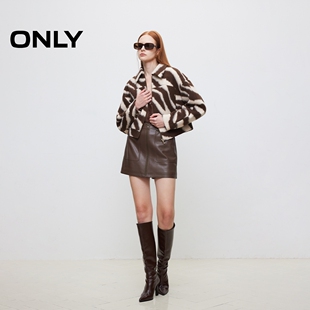 潮流复古斑马纹短款 新款 春季 宽松毛呢大衣女 ONLY奥莱